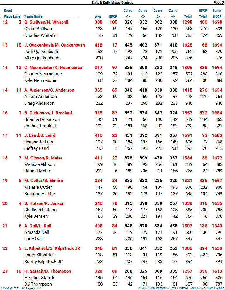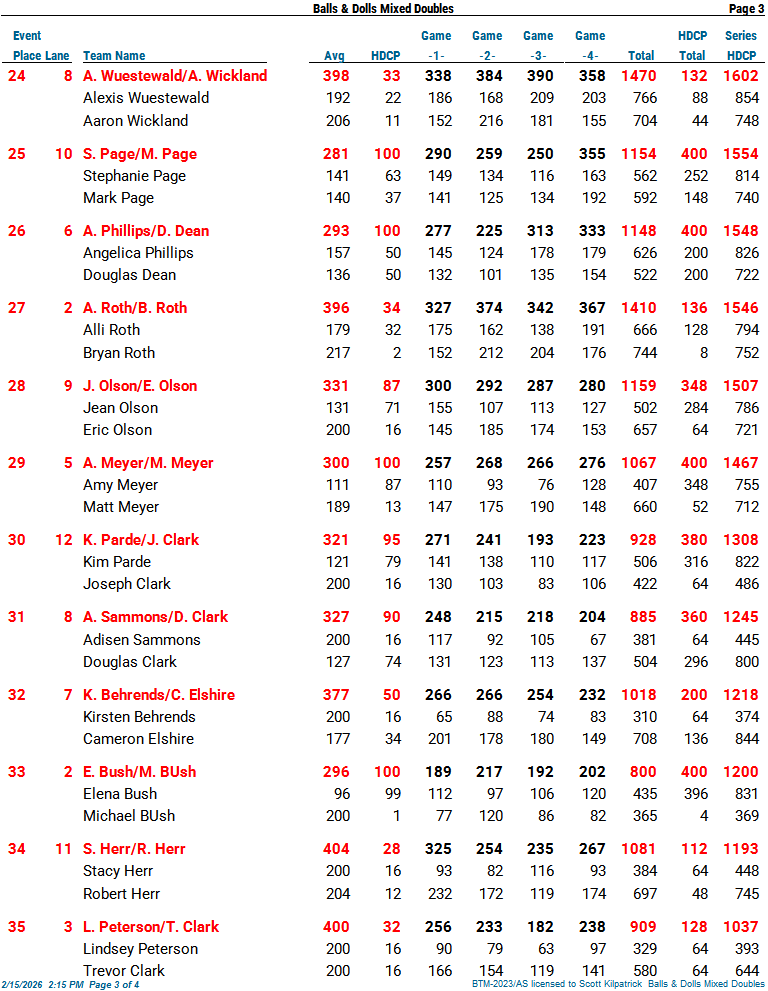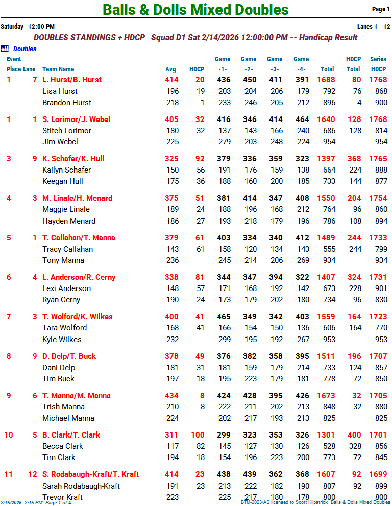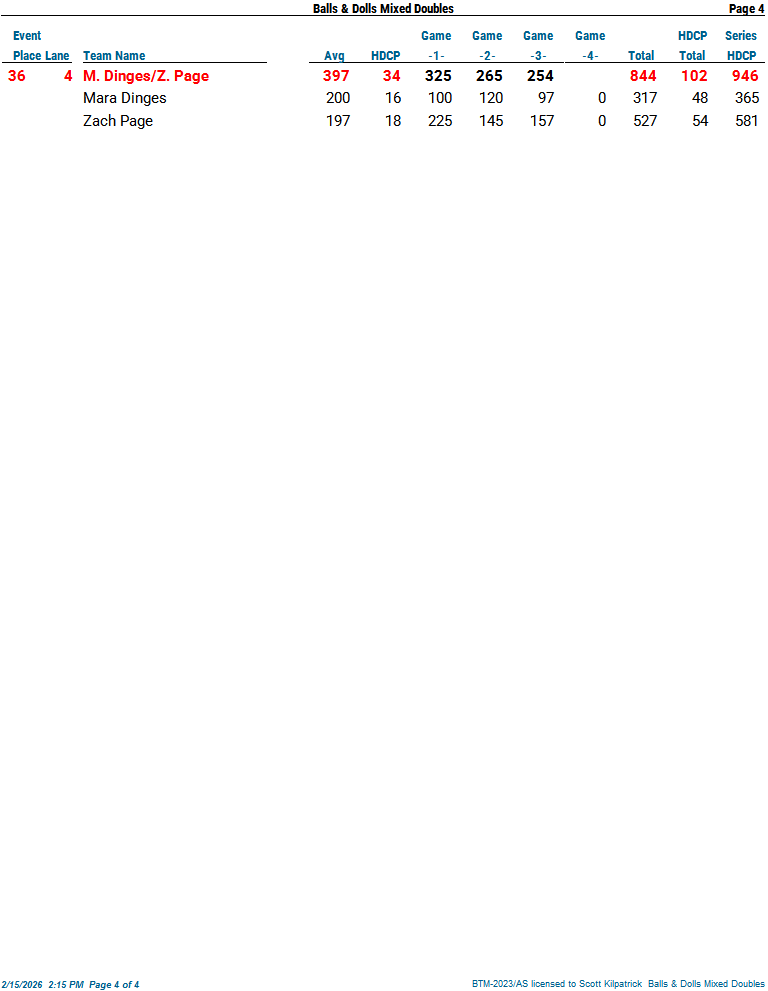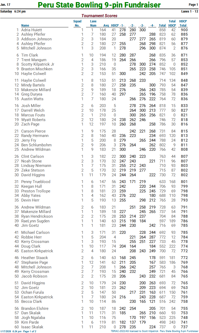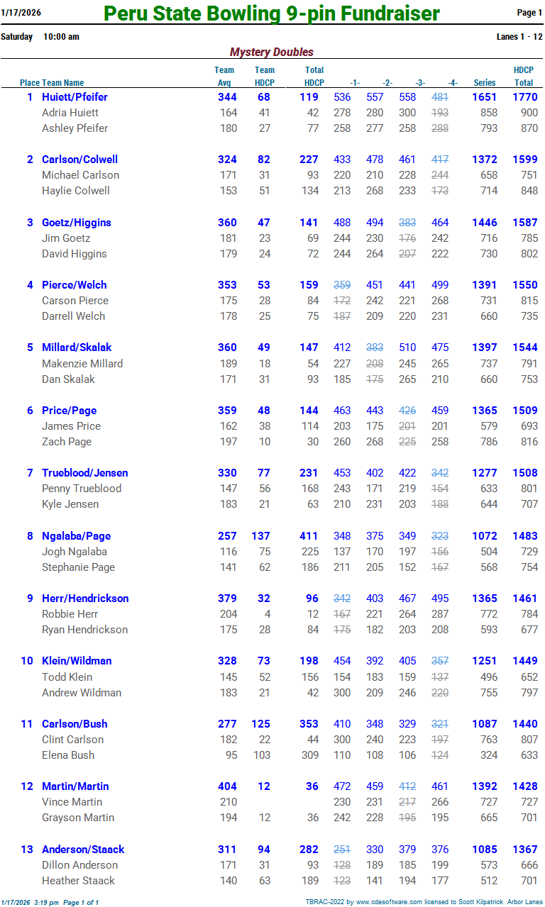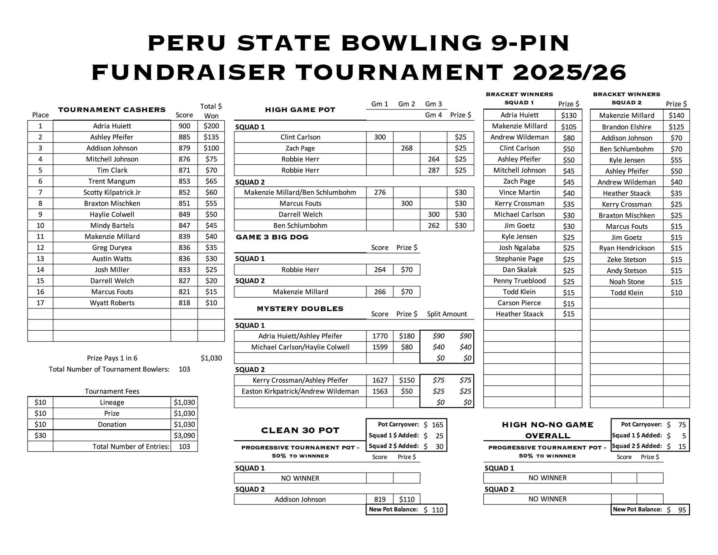 STANDINGS FROM THEBALLS & DOLLS MIXED DOUBLES TOURNAMENT View fullsize View fullsize View fullsize View fullsize View fullsize View fullsize STANDINGS FROM THE PERU STATE BOWLING 9-PIN FUNDRAISER TOURNAMENT View fullsize View fullsize View fullsize View fullsize View fullsize